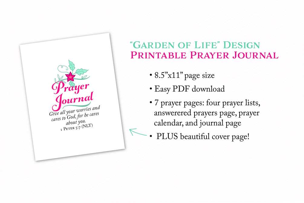 Garden of Life Printable Prayer Journal ~ with beautiful cover page and seven prayer pages!