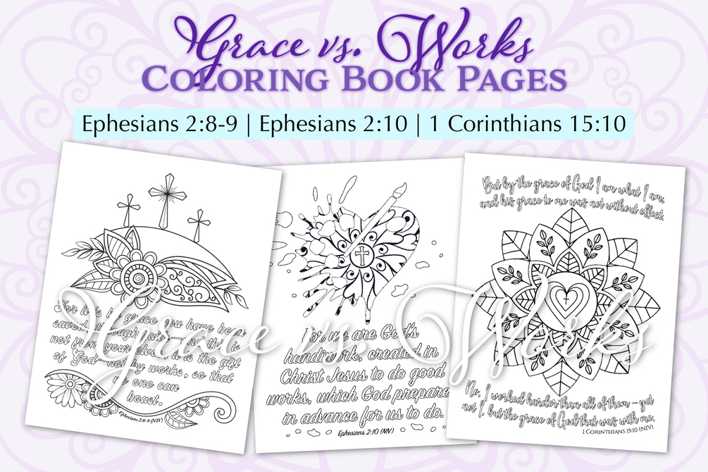 ➡️ 🎨 The Grace vs. Works Coloring Book & Bible Study will help you gain a better understanding of the balance of God's grace vs. your own actions! It incorporates 12 Bible verses about God's grace, our works, and how those two things intertwine.